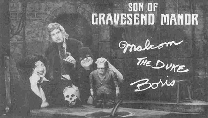 "Gravesend Manor" was a hosted horror movie show with Ed Weiss as "Malcom the Butler" and Jim Varnum as "The Duke of Desmodas" presenting movies on Saturday nights on WOI-TV, Channel 5 Des Moines, Iowa in the late 1950's to early 1960's.![]() The show would return in 1964; then again as the mid 1970's for a few years as "Son of Gravesend Manor" ![]()