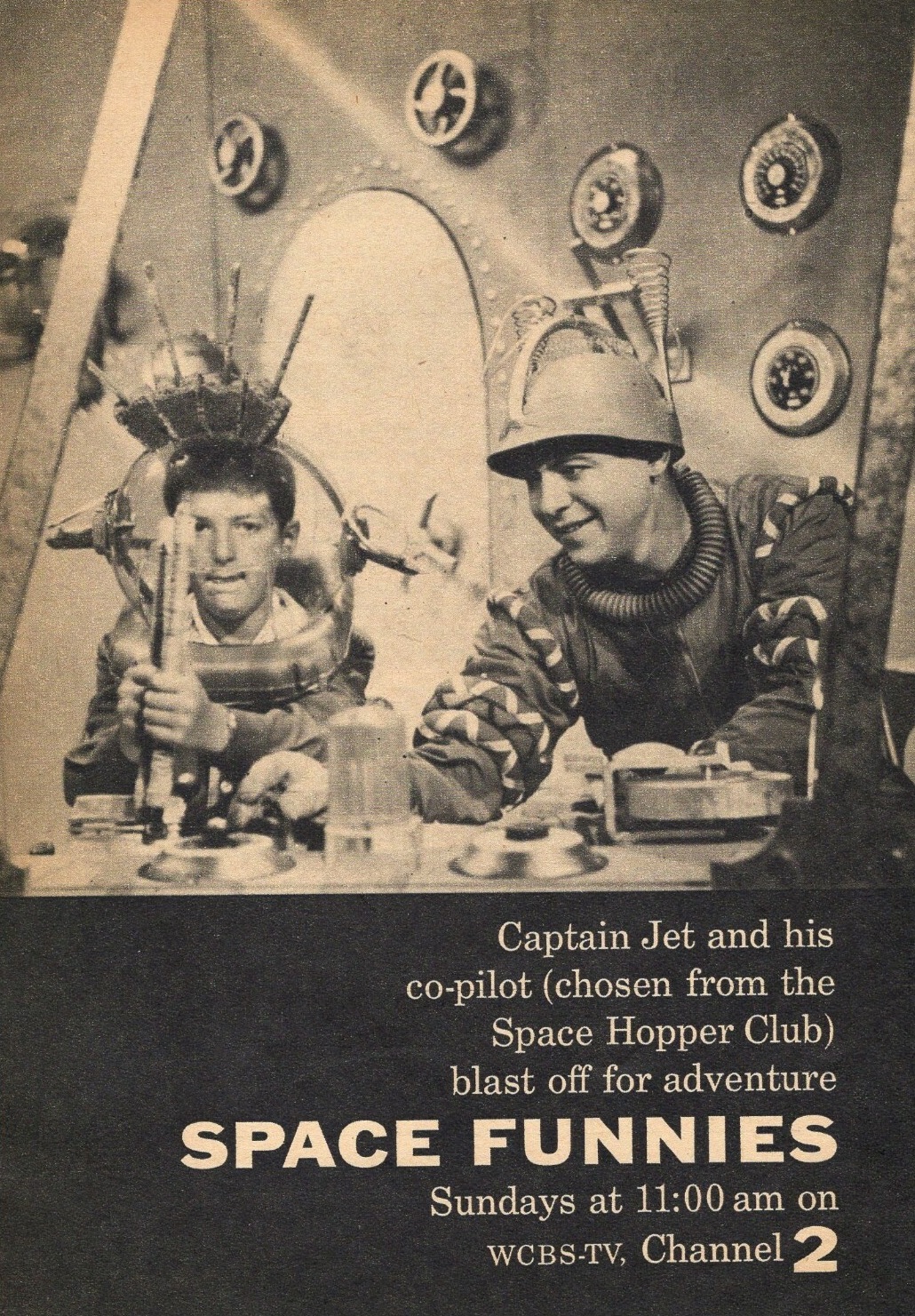 "Space Funnies" was a 60 minute episode hosted children's space themed show on WCBS-TV Channel 2, in New York, New York, USA; under the title "Space Funnies" from 5 July 1953 until 9 October 1955, then changing name to "Captain Jet" from 10 October 1955 until 31 December 1960.