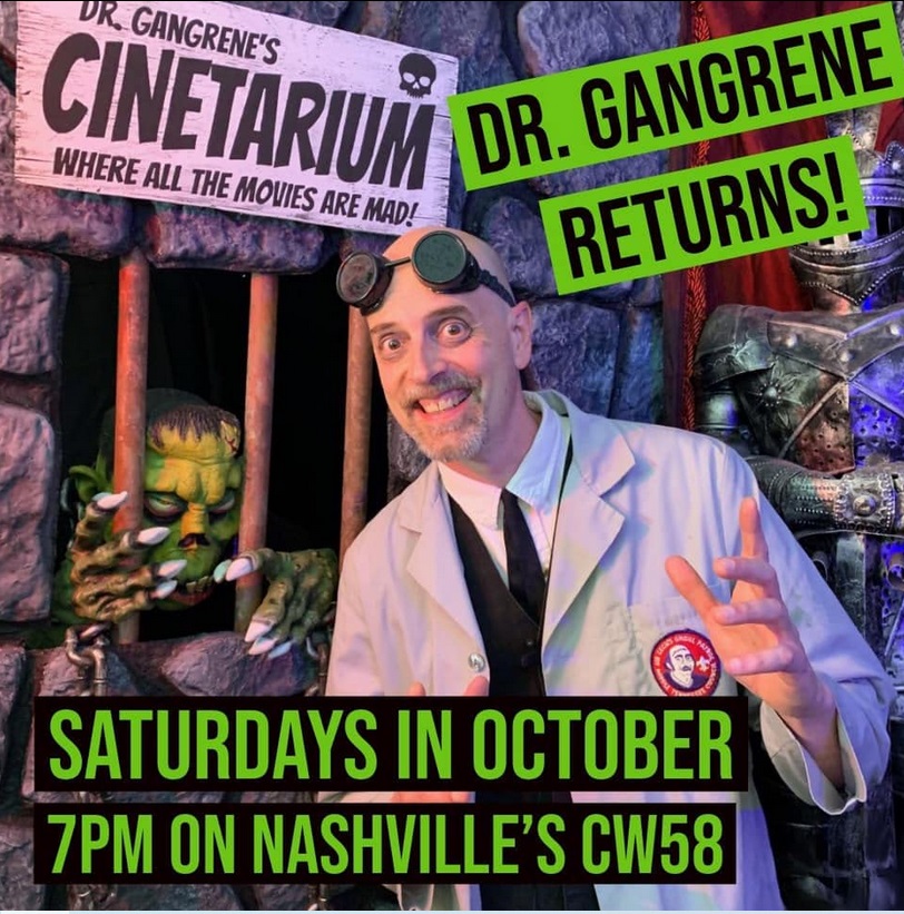 DR. GANGRENE'S CINETARIUM (CW58) 2019 DR. GANGRENE'S CINETARIUM (NECAT) 2020 -> To celebrate Larry's 20 years as a horror host, Dr. Gangrene returned in October 2019 for "Dr. Gangrene's Cinetarium" on CW58, with four hosted show shows. The show returned in January 2020, moving to NECAT Channel 9.