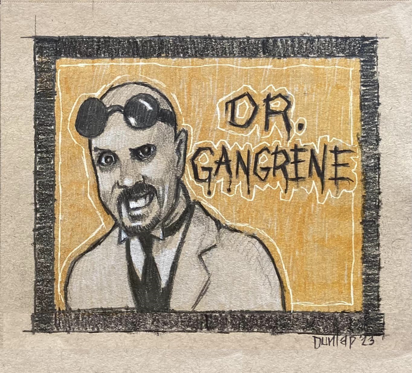 DR. GANGRENE'S TALES FROM PARTS UNKNOWN 2016 In 2016 he published a collection of short stories called "Dr. Gangrene's Tales from Parts Unknown".