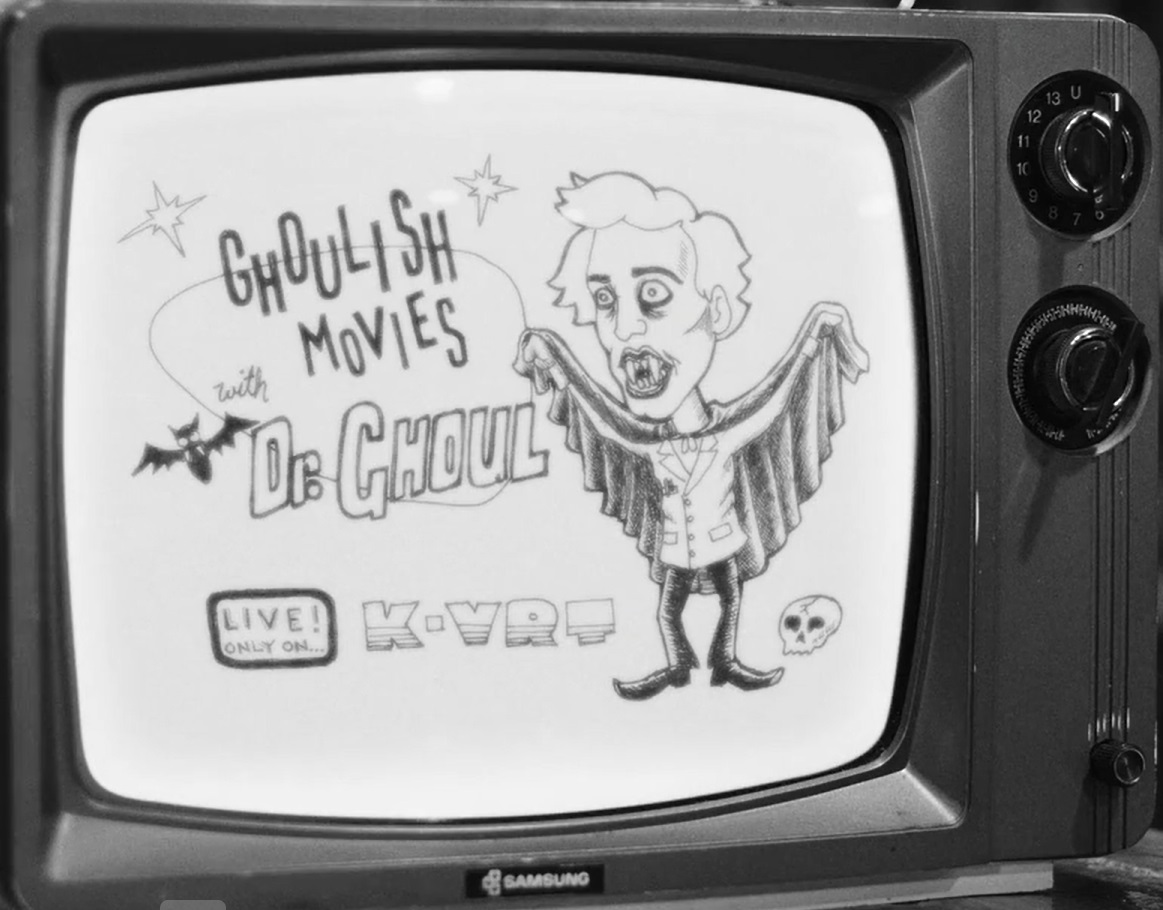"The Horrible Life of Dr. Ghoul" is a 2013 short movie that tells the sad tale of "Dr. Ghoul" (a mad scientist/vampire character - played by Chris Doubek), who is the host of "Ghoulish Movies", a hosted horror movie show on K-VRT.