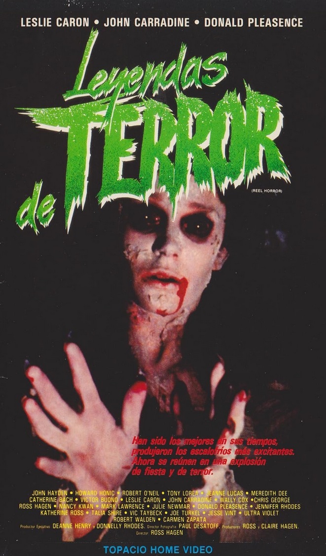 "Horror Reel" (the Spanish title "Leyendas De Terror") is a 1985 anthology horror movie, where unrelated snippets of eight different horror movies are combined with "host segments" including a one eyed woman and the creepiest dwarf sidekick. The plot - evil spirits that emerge from cans of old movie film terrorize a neighborhood.