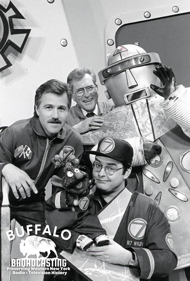 "Captain Mike" had his sidekick, Yeoman Bob (Bob Stilson), with Randall's wife, Kathy Randall, his youngest son, Adam Randall, Promo the Robot (Charlie Mikolajczyk) and Captain Comic (Tim Warchocki), and Tom Jolls, whose Commander Tom's World had ended its run a year prior, makng cameos on Rocketship 7 during this time.