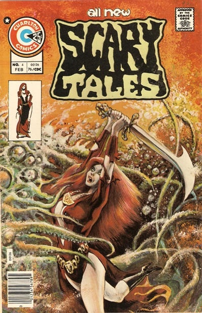 "Scary Tales" is an American ongoing comic book series of the horror and anthology genres. It was published by Charlton Comics and ran for forty-six issues from August 1975 to October 1984. The series featured vampire vixen "Countess Von Bludd" as its host.