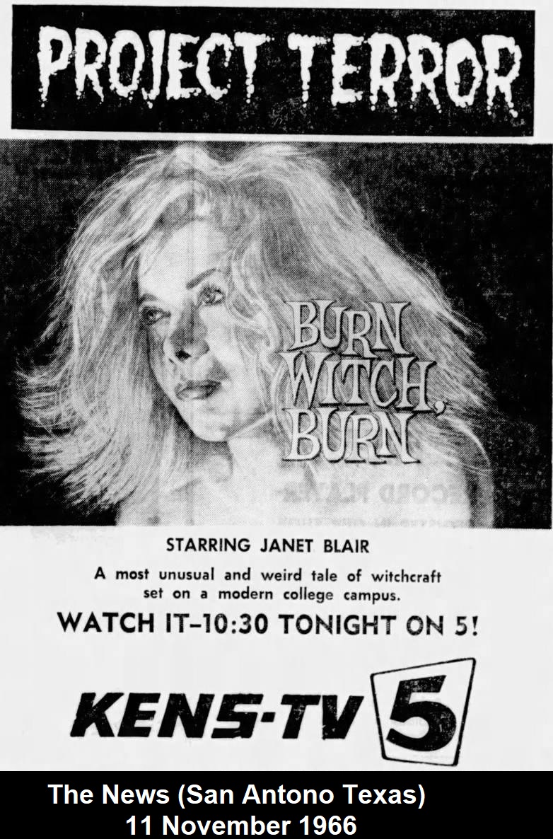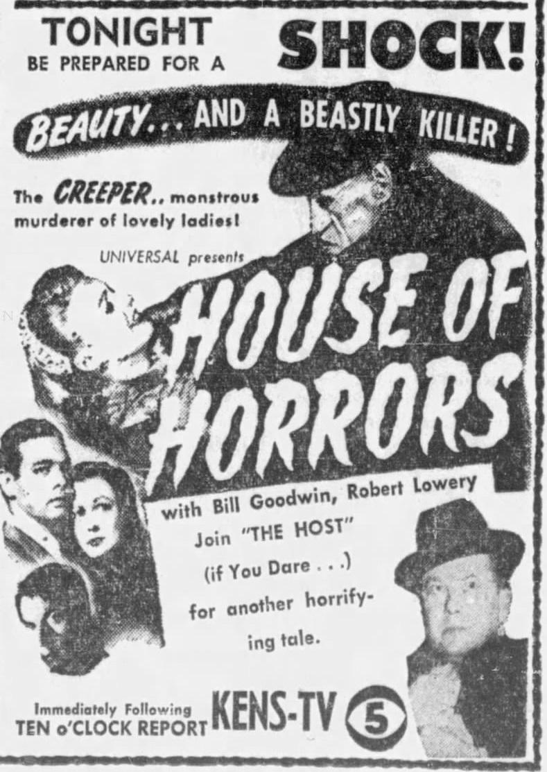 "Shock Theater" (aka "Shock") was on KENS-TV, Channel 5 San Antonio, Texas - Friday nights from 1959 until 1960.