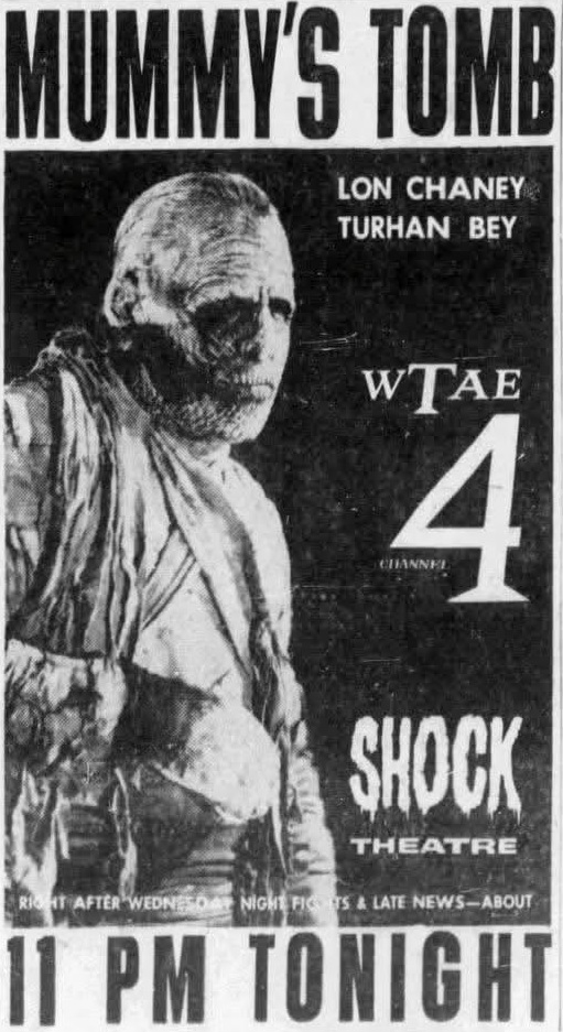 "Shock Theatre" was a hosted horror movie show with Bob Drews as "Sir Rodger", presenting movies from 1958 to possibly 1962.