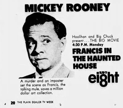 "The Hoolihan and Big Chuck Show" was a hosted horror movie show with Bob Wells as "Hoolihan" and Charles Schodowski as "Big Chuck" presenting movies on Friday nights on WJKW-TV Channel 8 Cleveland, Ohio during December 1966 until August 1979.