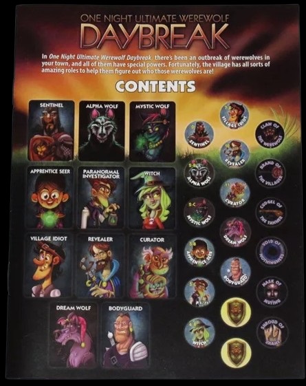 Daybreak includes eleven new roles, and it can be played on its own or combined with the original One Night Ultimate werewolf game; when combined, you can have up to ten players in a single game.