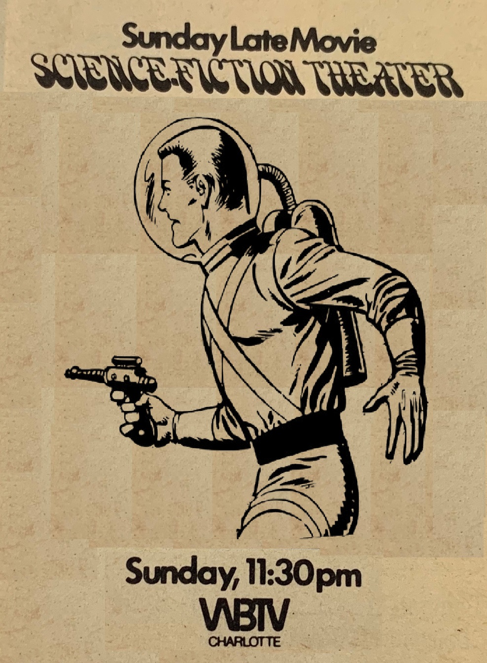 | "Science Fiction Theater" was a non-hosted science fiction movie show on WBTV Channel 3 in Charlotte, North Carolina, USA. The show ran from at around 1956 until at least 1974 (on and off). The show screened at 6:00pm, and then moved to 11:30pm on Sunday nights.