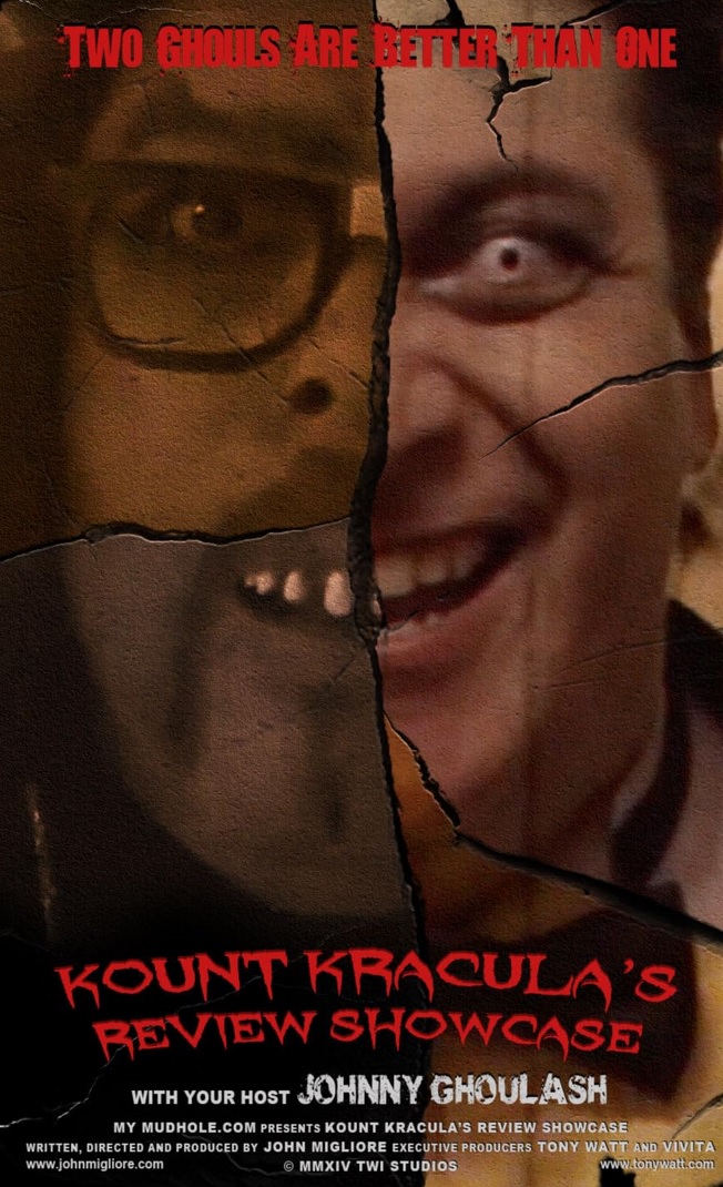 | "Kount Kracula's Review Showcase's Review Showcase" was a Canadian hosted genre review show with Tony (Tex) Watt as "Kount Kracula" and John Migliore as "Johnny Ghoulash".