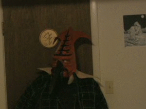 | I offer you a double dose of Atomic Age Cinema monsters. Tonight I present Reverend Polypus and Basement Boy, hosts of Atomic Age Cinema; a collective of evil, horrible monsters that reside in a shack in Bloomington, IN. Atomic Age Cinema began as a fund raiser in conjunction with the Cinephile group. They host both live movie events and their own web based internet show. Little known information actually exists on Basement Boy or Reverend Polypus. Basement Boy, it seems was found in the Atomic Age Cinema shack and lives in the basement behind a pile of magazines of questionable content. In his "Bloomington after Midnight" interview, Doktor Calamari had this to say of Basement Boy, "Whenever you need a specimen, Basement Boy is always there to go out and get one". Unfortunately Reverend Polypus was unavailable for any further comment. |