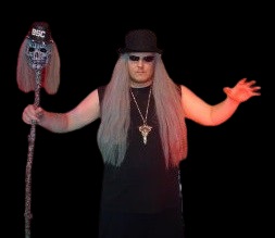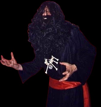 MR. SHREEK From Gortem Shreek's Horror Host Underground website profile:It's always midnight-at "Black Sky Cinema". Gortem Shreek resides in his family's home of 6 generations. The Shreeks were outcasts, and people feared them for their gothic look and strange practices. Gortem was raised by his grandfather, a black magician, who taught him to summon flame. He lives alone, seeing no one. He studies horror and film to fill his days, and watches classic horror to fill the nights. Black Sky Cinema is the only contact he has with the world. He lives by his own laws, and they are not man's laws. His vast family fortune is a deep secret, and Gortem Shreek trusts nobody. Cross him, and you'll burn!!. He does have a sense of humor, though it's a "sick sense."