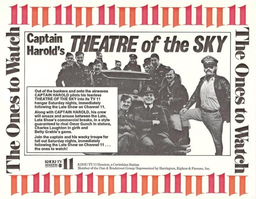 | Harold Gunn was to host three horror movie shows "Boo Theatre" as "Count Harold"; "Captain Harold's Theater of the Sky" as "Captain Harold" and "Creature Feature" as "Captain Harold"