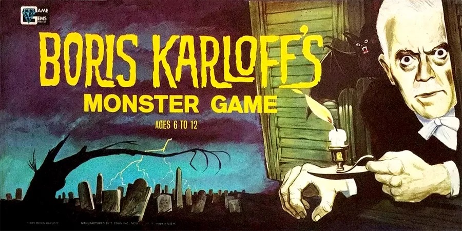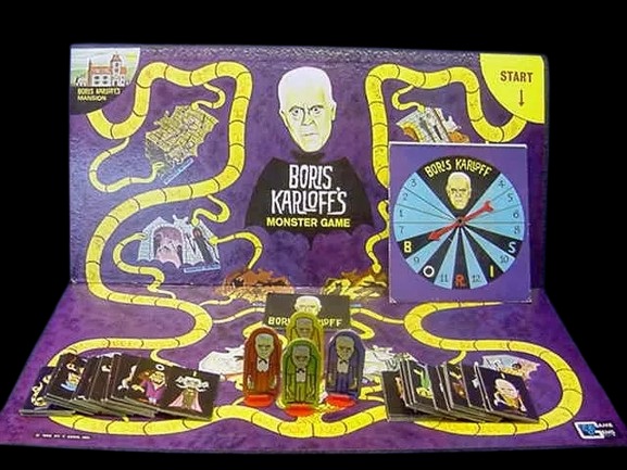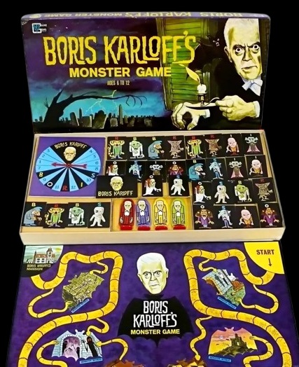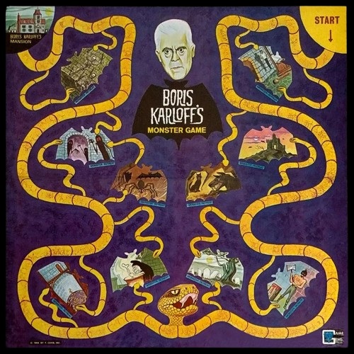 | "Boris Karloff's Monster Game" is a 1965 board game for 2 - 4 players; recommeded for ages 6-12 (or for your inner child) designed by T. Cohn and published by Game Gems.