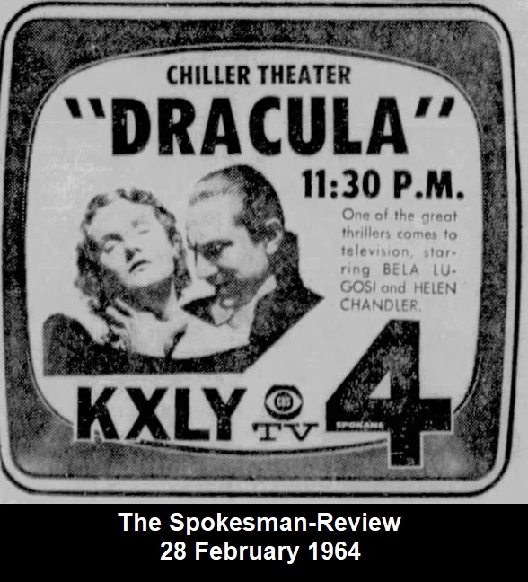 | "Chiller Theater" was a hosted horror movie show, screening at 11:30pm on Friday nights, on KXLY-TV Channel 4 in Spokane, Washington, USA. The show ran around 1964.