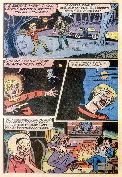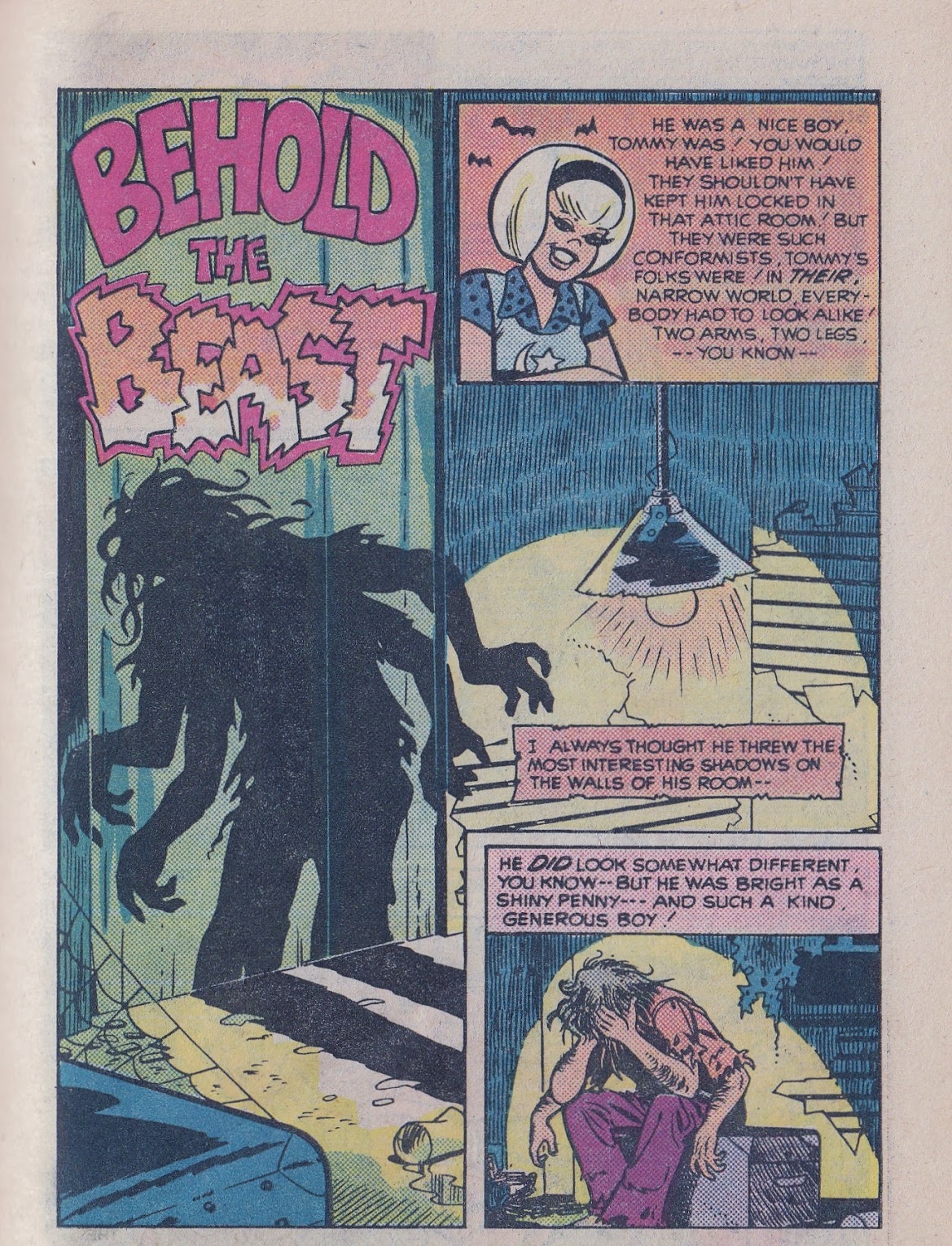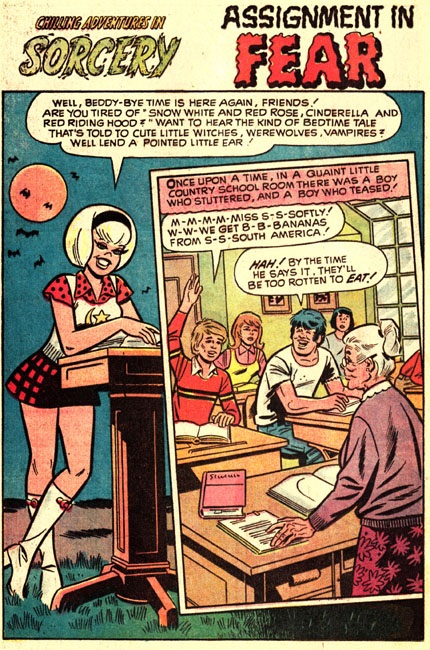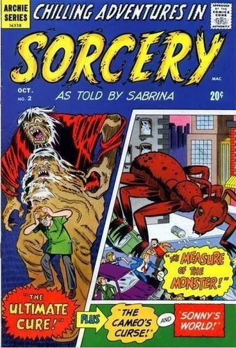 | "Chilling Adventures In Sorcery As Told By Sabrina". In 1971, the Comics Code Authority loosened its regulations regarding monsters, allowing limited use of "classic" creatures including vampires, werewolves, and zombies. Archie Comics then released in 1972 "Chilling Adventures In Sorcery As Told By Sabrina"; a combination of horror writing, but Archie style art! ![]() Writer Frank Doyle, penciler Dan DeCarlo, and inker Rudy Lapick made up the production crew. This style did not work, so after only two issues, the series was revamped into a more traditional ![]() title with non-cartoony art by Gray Morrow and associates, dropping Sabrina as the host. The retitled "Chilling Adventures In Sorcery" survived for nine more issues.
