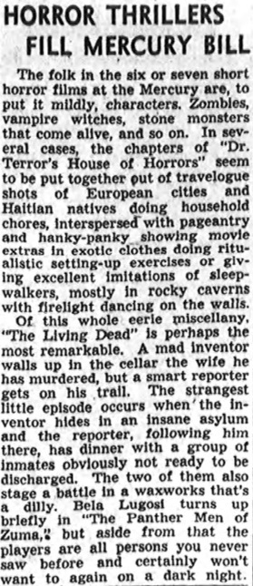 The seven stories were edited excerpts from the following movies, using the narration by Doctor Terror as bookends / wraparound: The Golem: The Legend of Prague (1936) The Living Dead (1932) The Return of Chandu (1934) Vampyr (1932) White Zombie (1932)