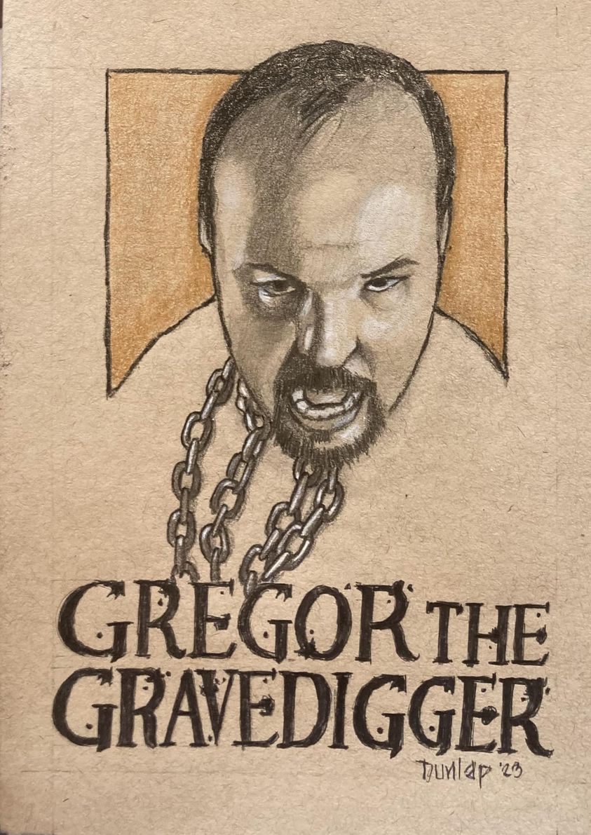 Portrait of "Gregor, The Gravedigger" by Dave Dunlap.
