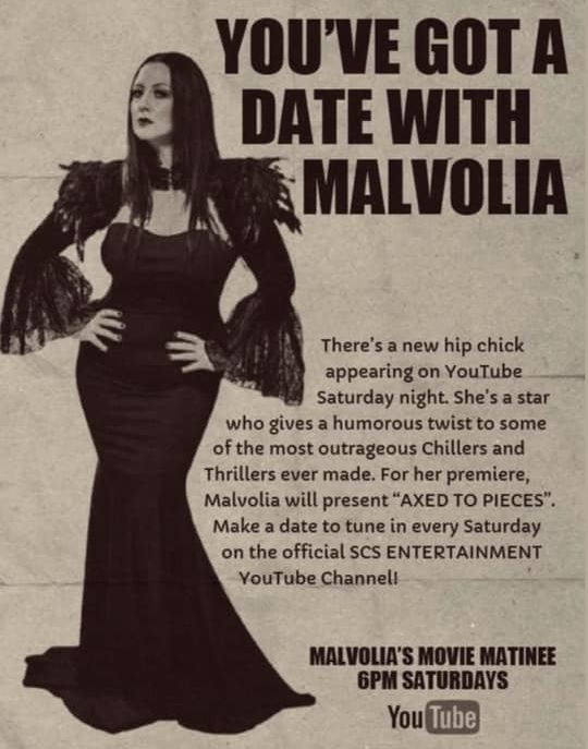 "GOTHIC HORROR WITH MALVOLIA" In post production (2024). "Malvolia: the Queen of Screams" brings you a classic collection of public domain Horror Films from the Gothic Genre along with great special features, intermission treats, and retro trailers along with a touch of indie horror added to the mix.