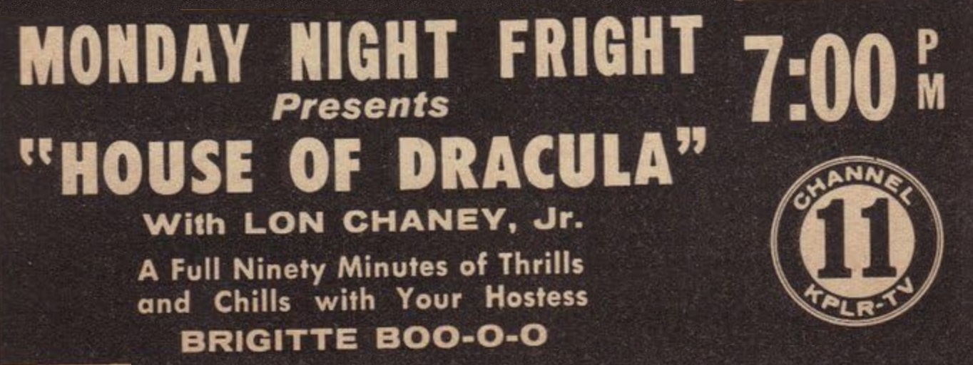 presenting and screening fantasy, horror and science fiction classic movies on KPLR-TV Channel 11, in St. Louis, Missouri, USA. The show ran from 26 February 1962 until 16 September 1963; at 7:00pm or 7:30pm. The name of the actor who played "Brigette Boo-O-O" is not known.