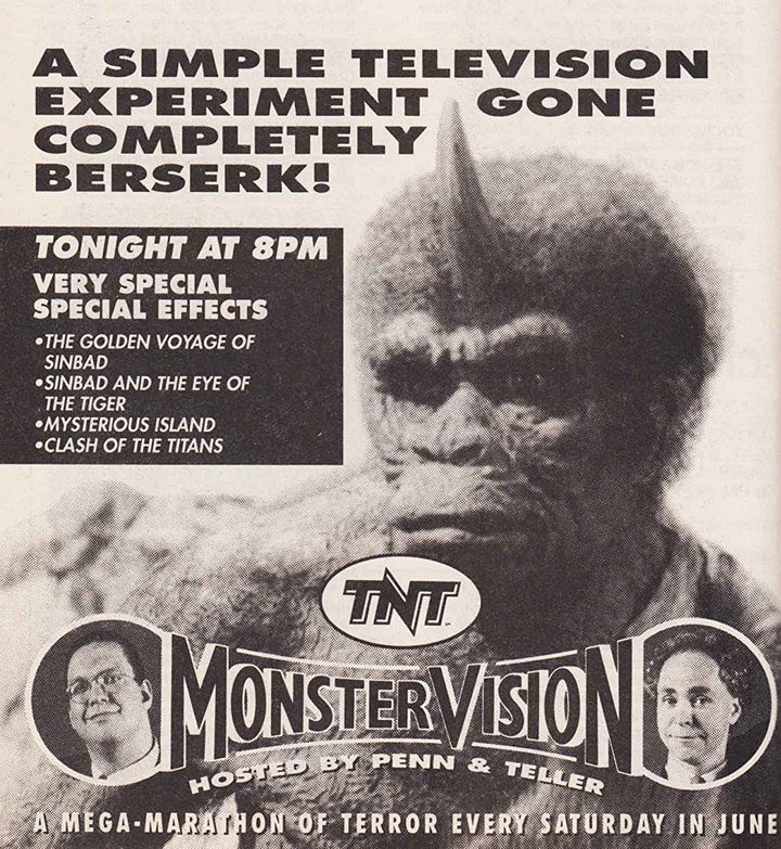 PENN & TELLER Later, in June 1993, entertainment duo Penn & Teller guest-hosted MonsterVision marathons featuring mainly old B-Movies from the 1950s and 1960s. Then, on 31 July 1993, the narrator of the series became solely a voice-over announcer.