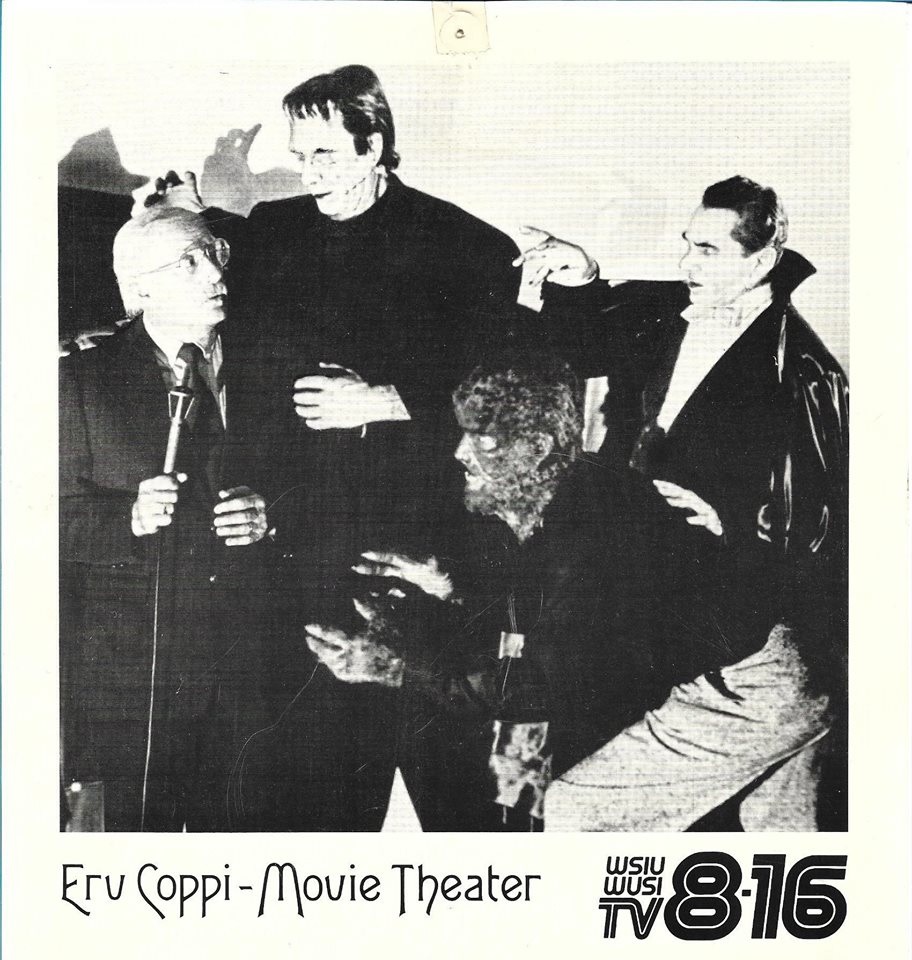| "Movie Theater" was a hosted classic and horror movie show, hosted by Ervin Coppi. The show ran from around 1978 until the 1980s. It ran on WSIU-TV Channel 8 and WUSI-TV Channel 16 in Carbondale, Illinois, USA. The show was screened at 10:00pm on Friday through to Monday nights. Coppi shared his incredible knowledge and love for classic films. On Horror Night, Coppi would host classic horror movies.