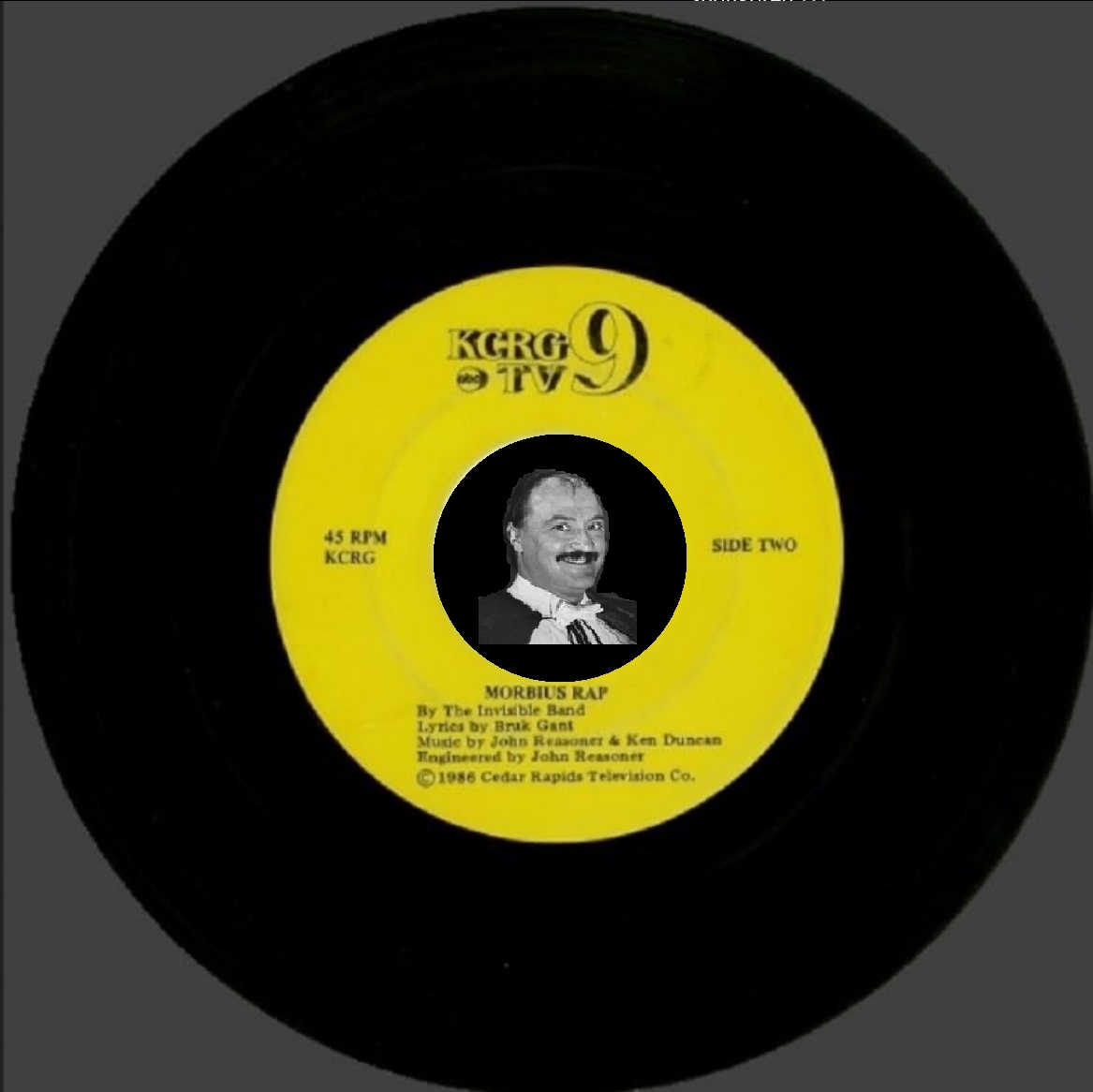 Another one of my hometown horror hosts. Tonight I present Dr. Morbius, host of Saturday Nightmare on KCRG-TV Channel 9 in Cedar Rapids, IA, which ran from June 1986 to November 1988. Sadly for me, I'd moved to Las Vegas, NV in 1985 and completely missed Dr. Morbius' show. Dr. Morbius was played by Bruce Gantenbein, a lifelong entertainer who performed under his professional name of Bruk Gant. Gant was a singer and guitarist as well as a stand-up comic. During his horror host days, he recorded a novelty song with The Invisible Band entitled the Morbius Rap. The flipside of the single was a song honoring the Iowa Hawkeyes called the Hawk Rap. Several clips from the show can be found on YouTube as well as both novelty rap songs. In the words of Dr. Morbius, "Remember, you can't trust your apparition, you can't trust your poltergeist, you can't trust your ectoplasm, but you can trust your doctor."