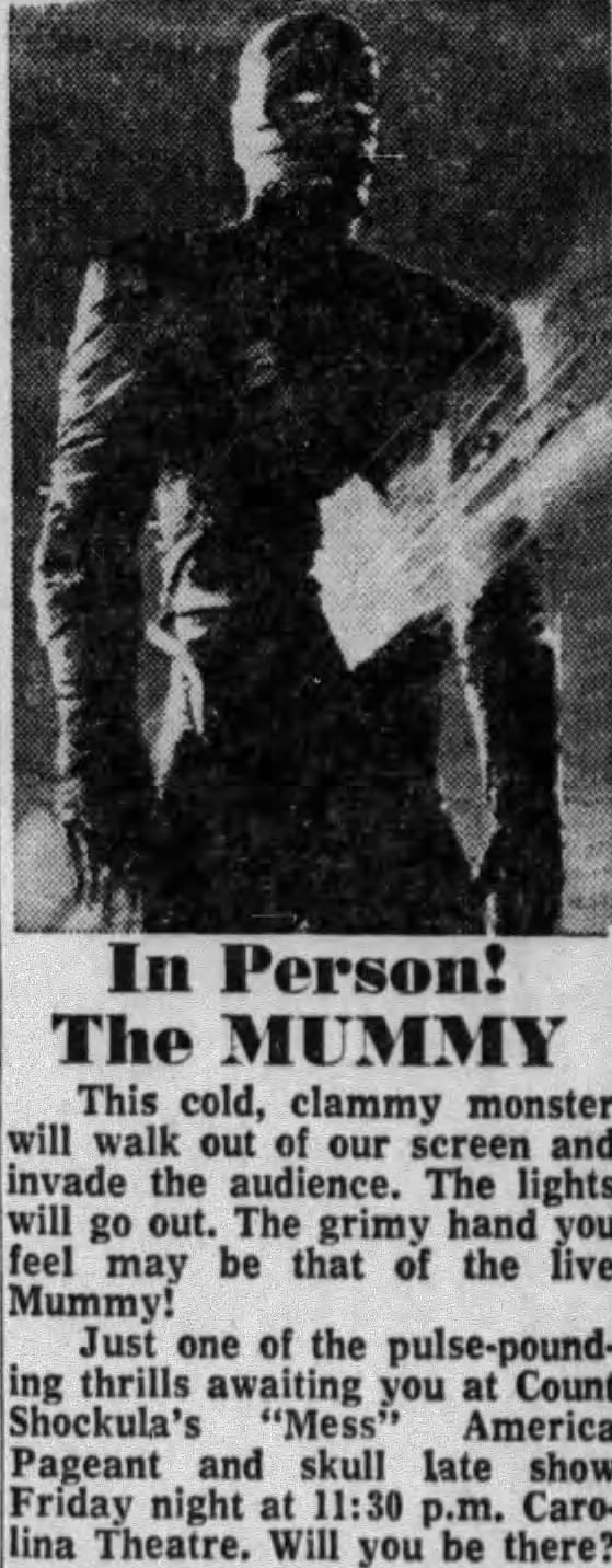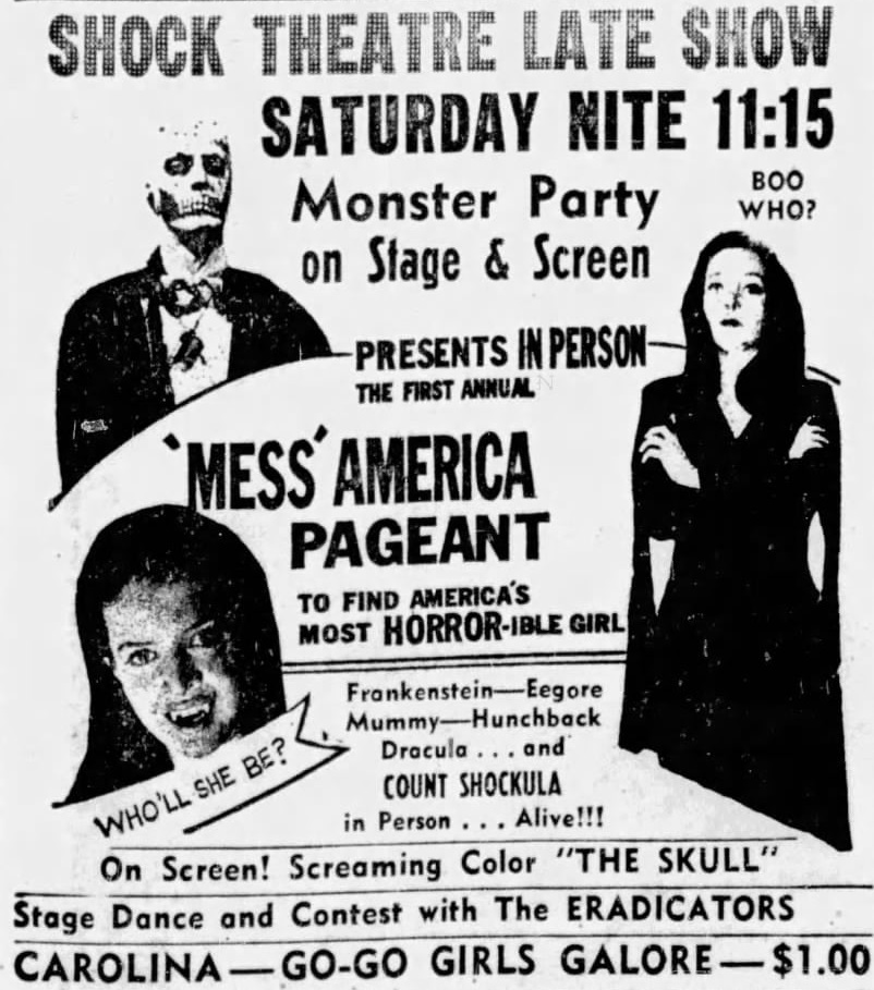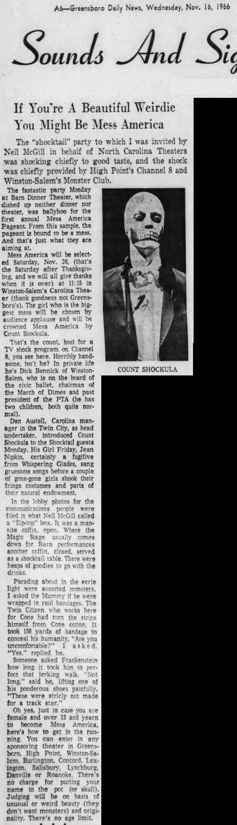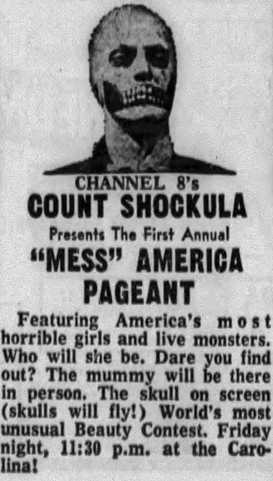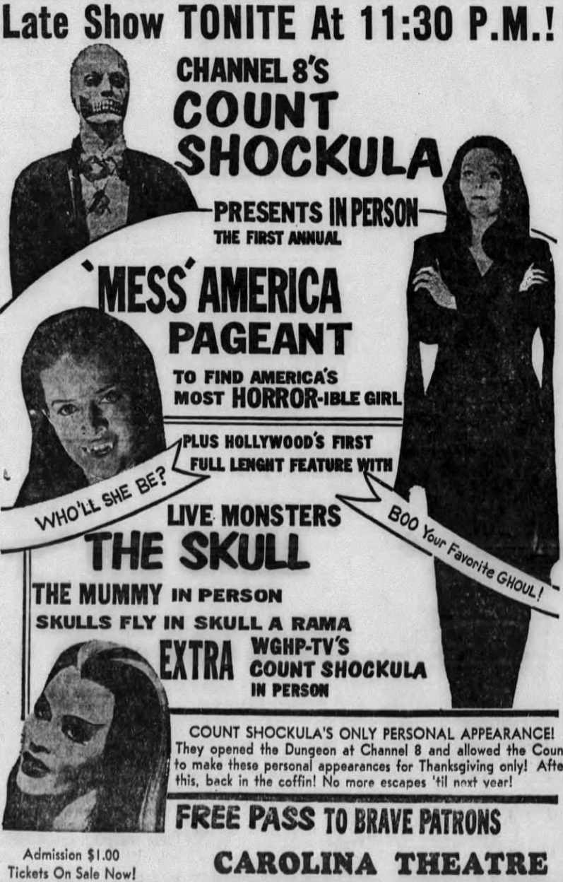 The show had morphed from the non-hosted show "Schock Theatre" on WGHP, running from 1963-1966. No one was noticing "Count Shockula", so Dick Bennick came up with the idea to invent a new character - "Dr. Paul Bearer", who would kill off "Count Shockula"on the show. |