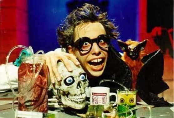 | A former horror host, he's now co-owner of The Netherworld. Tonight I present Dr. Ignatius Speculo, host of Tales From 6 Feet Under on WCTV Channel 6 in Tallahassee, FL, which ran from September 12, 1992 to March 27, 1993. Dr. Speculo was a mad scientist with a profound love of bad B horror movies. Speculo's over-the-top antics combined with his frenetic energy must have left his audience's senses on visual overload. He was joined in his mania by his sidekicks Mortimer the talking skull, Rufus the vampire bat, and Frunobulax the monster. Dr. Speculo was imagined by Ben Armstrong, who is currently co-owner of Netherworld Haunted Attractions in Norcross, GA. Nationally recognized for his contributions in the Haunted House industry, Armstrong's acted as a consultant on horror themed events across the nation. Visit Dr. Speculo's world of nightmares at http://www.fearworld.com/.