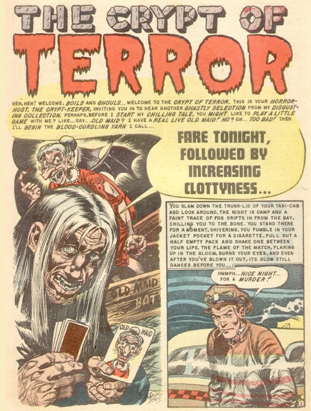 In April and June 1954, a congressional subcommittee hearings on the effects of comic books upon children left the industry shaken. With the subsequent imposition of a highly restrictive Comics Code, EC Comics publisher Bill Gaines cancelled "Tales From The Crypt".