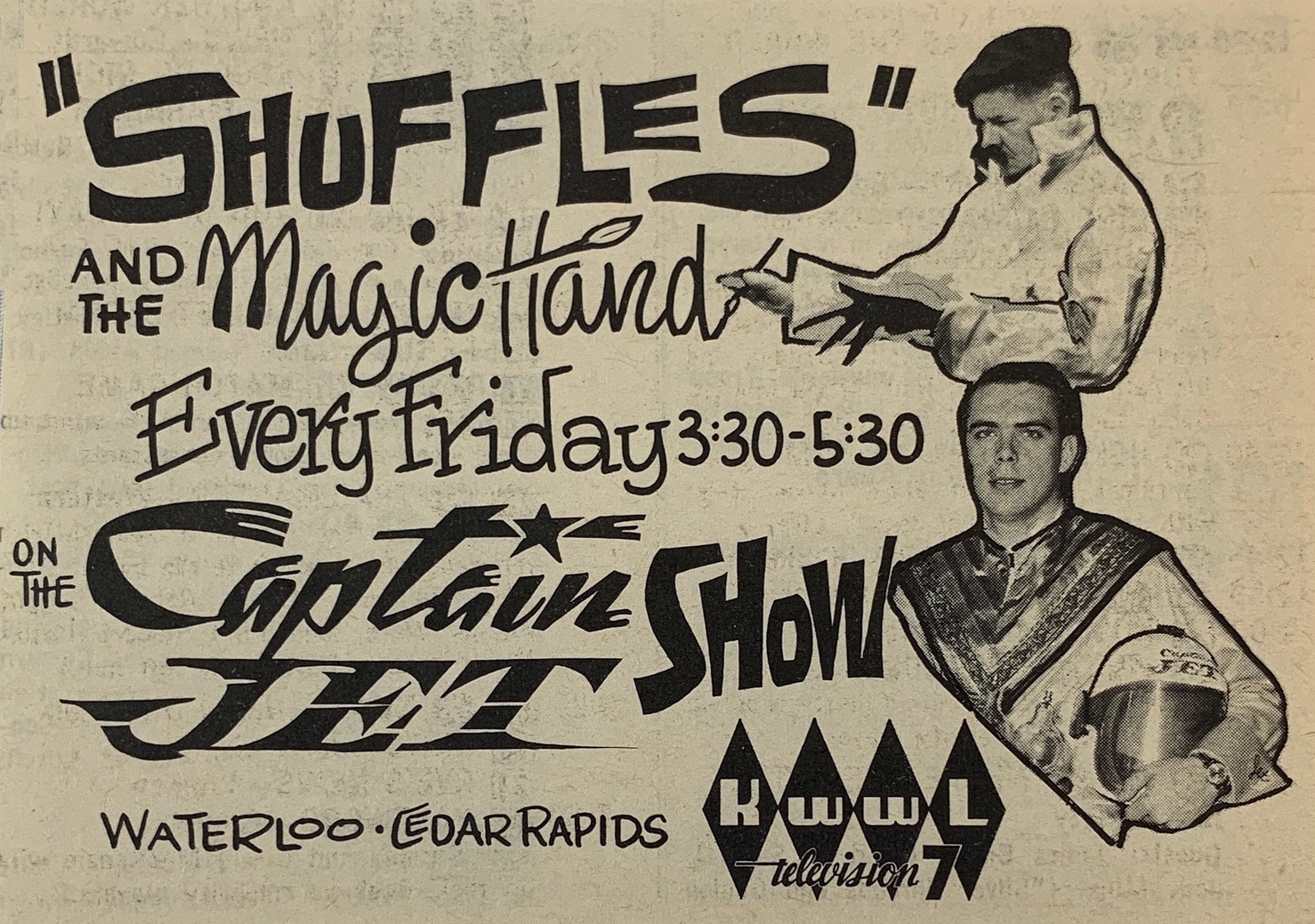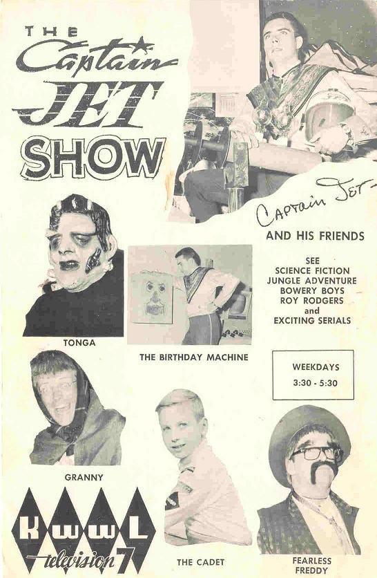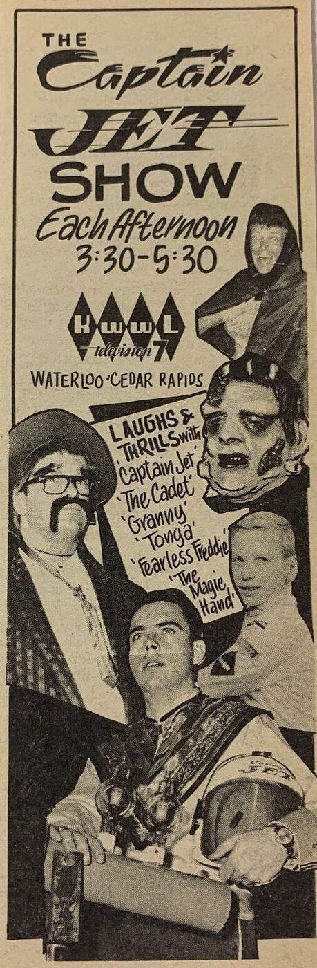 | "The Captain Jet Show" was a hosted children's space / science fiction themed show on KWWL Channel 7 in Waterloo, Iowa, USA, around 1965; airing each afternoon from 3:30pm-5:30pm.
