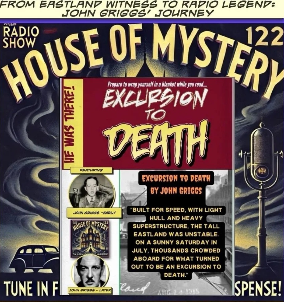 JOHN GRIGGS John Griggs began his stage career in Detroit. His first Broadway experience was in the George Arliss production of "Merchant of Venice". He was heard in over 5,000 network radio programs, notably as Roger Elliott in "The House of Mystery". During World War II he broadcast for the "Voice of America". As television grew, Griggs appeared on the Jackie Gleason program and the "United States Steel Hour". He was married to Alice Griggs, and together, they had a son Timothy.