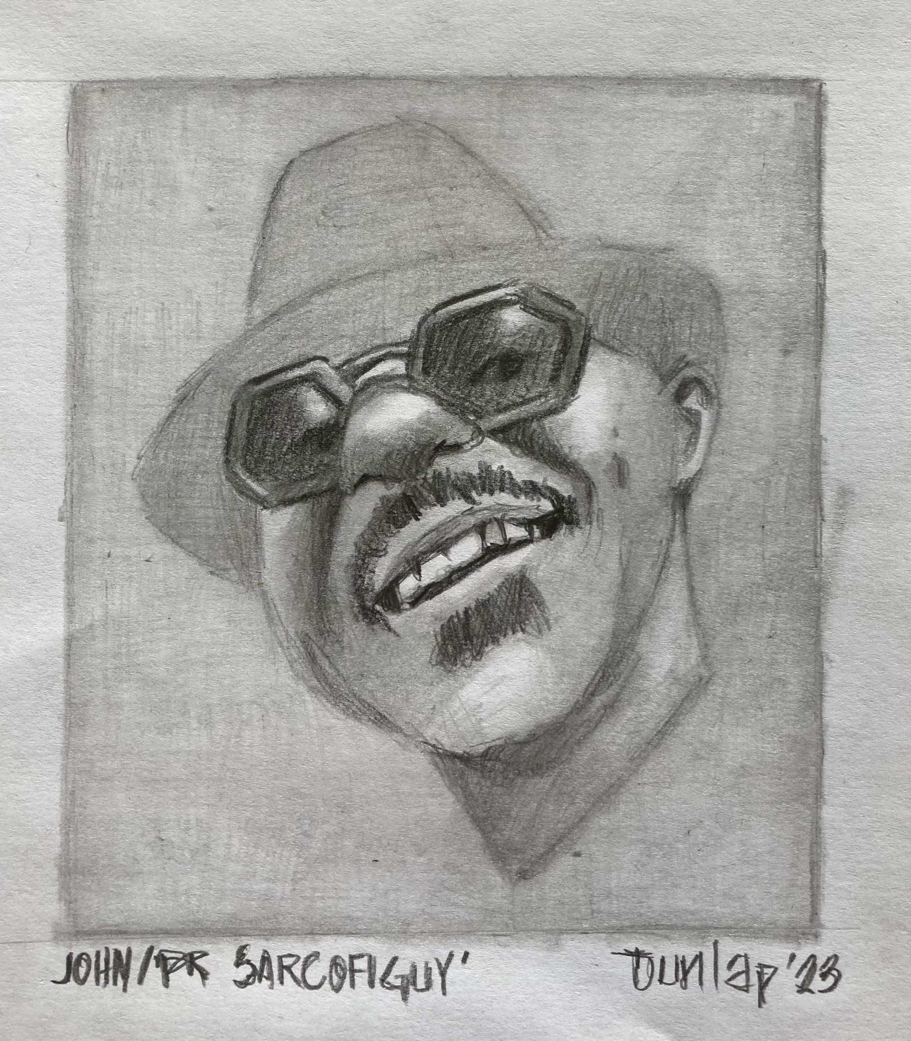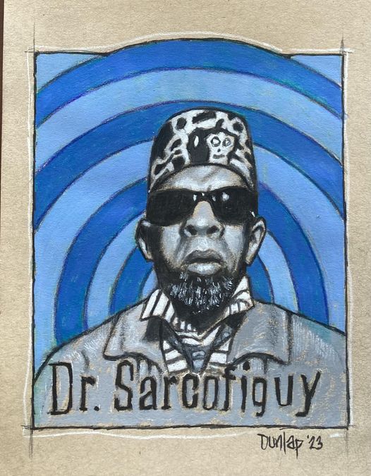 ![]() Portrait of "Dr. Sarcofiguy" by Bradley Beard. "Dr. Sarcofiguy" - biography (taken from Bradley Beard's Facebook page)" If your mental disorder is out of order, then you may need a doctor... but certainly not this one. Today I present Dr. Sarcofiguy, host of The Spooky Movie on Channel 12 in Fairfax, Virginia, which ran from 1995 to 2006. Dr. Sarcofiguy was the first black horror host and also awarded the Presidency of Monsterland by Karlos Borloff. Once considered a "normal" doctor, he is now on the road to recovery and certifiable insanity. Dr. Sarcofiguy could be considered a health care professional; that is if you don't take other health care professionals into consideration. Dr. Sarcofiguy occasionally releases patients he deems "Lemon Pi" back into the general populace. One such patient, Mr. John Dimes is still unaccounted for; use caution when approaching this patient as he is considered extremely talented and comical. So unless you are seeking a like mind, seek medical help elsewhere tomorrow.