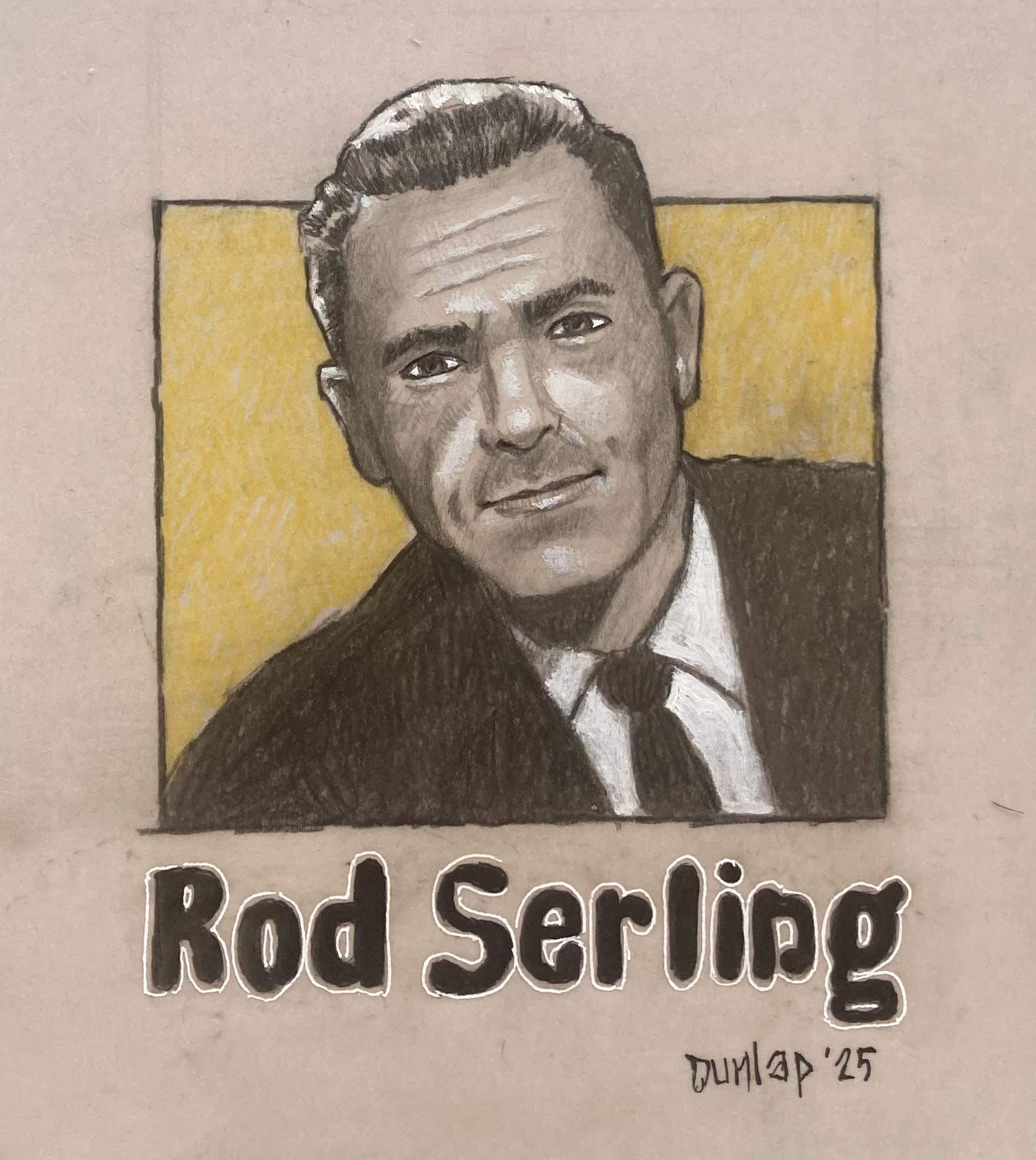 | From Wikepedia: Rodman Edward Serling (25 December 1924 - 28 June 1975), commonly known as Rod Serling, was an American screenwriter, playwright, television producer, and narrator known for his live television dramas of the 1950's, his anthology television series - "The Twilight Zone" and "Night Gallery"; and radio anthology series - "The Zero Hour".