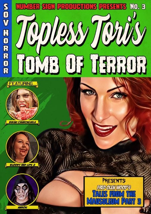 "Topless Tori's Tomb of Terror" is a direct-to-dvd horror anthology tribute to late night horror host shows featuring shot-on-video short films from three independent filmmakers, as well as mock commercials, commentary tracks and more;![]() hosted by Sheena Monster as "Topless Tori".