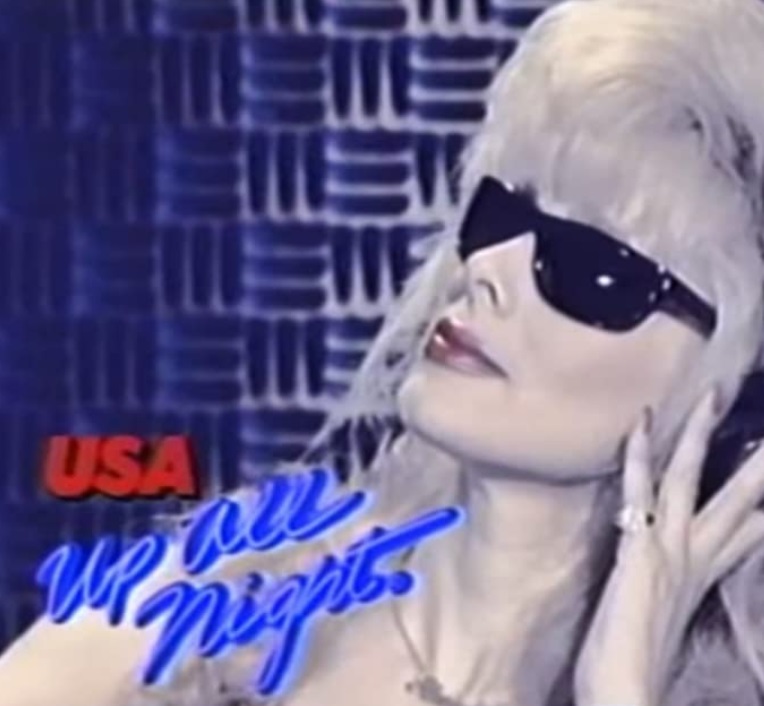 | It's your bedtime buddy. Tonight I present Rhonda Shear, hostess of USA Up All Night which aired on the USA Network from January 7, 1989 to February 1998. Gilbert Gottfried hosted Up All Night on Saturday nights. Halfway through the first season, USA Network decided to add a second version of Up All Night to the Friday line-up hosted by Caroline Schlitt. Schlitt left the show in December 1990 and was replaced by Rhonda Shear. It retained the same format as the Saturday night Gottfried version; it aired at 11pm on Fridays and would feature three movies, the third movie often being a repeat of the first. In 1993, Shear also hosted a Spanish version of the show for the Latin market. Her show featured skits, music, and celebrity interviews. With her obvious beauty and sultry sensuality, a person has to wonder... who wouldn't want to stay up all night with Rhonda?
