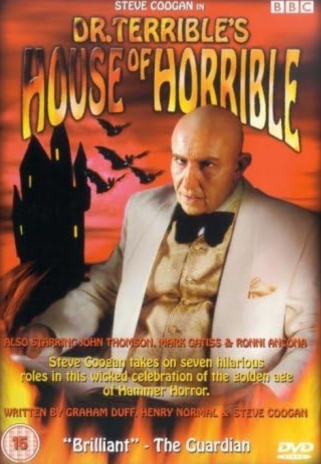 | "Dr Terrible's House of Horrible" is a satirical UK comedy horror anthology series created by Graham Duff, who co-wrote the series with Steve Coogan. BBC Two broadcast the series in 2001.