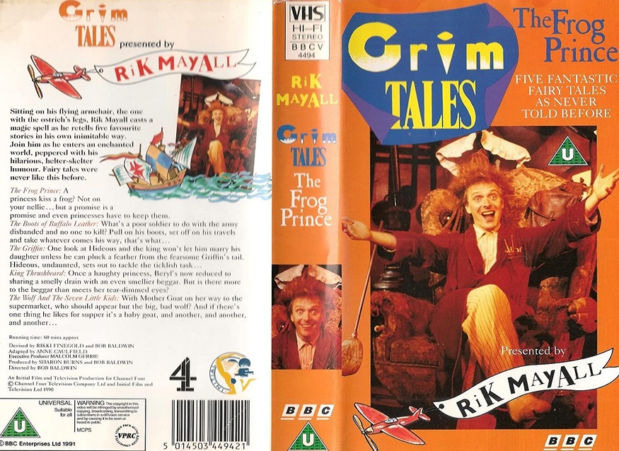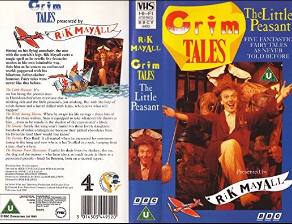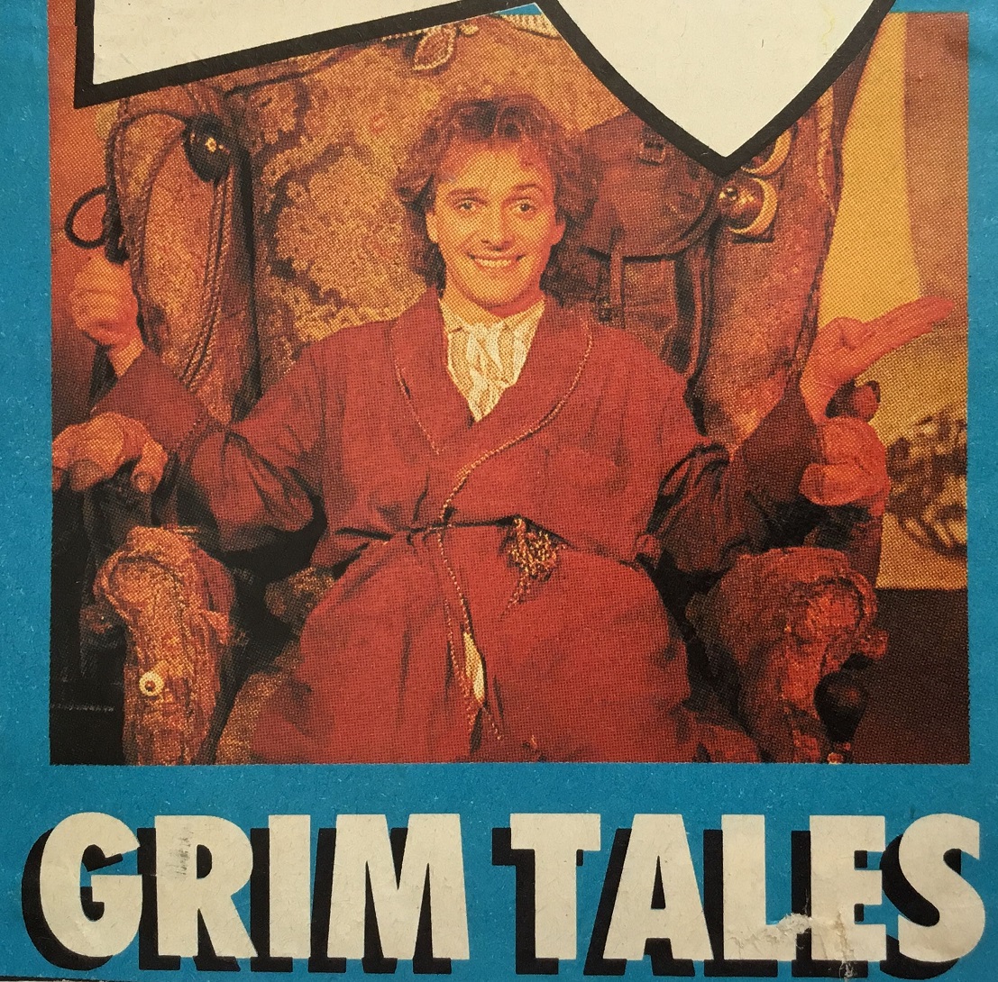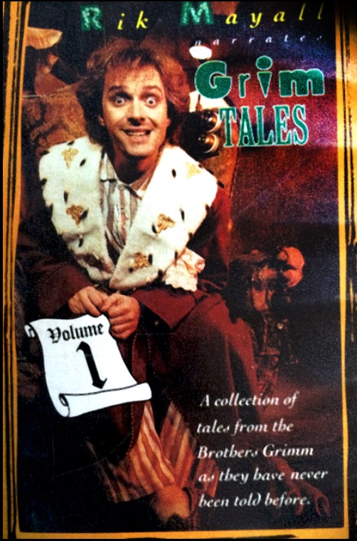 "Grim Tales" was a British children's television program based on fairy tales by the Brothers Grimm, featuring Rik Mayall as the storyteller dressed in his pyjamas and dressing gown. The twenty-two episodes were broadcast on ITV from 14 April 1989 until 17 March 1991. Mayall tells the tales in his own inimitable way from his armchair, designed David Barrington Holt, complete with paws and ostrich legs. The set was designed by building designer Julian Cripps.