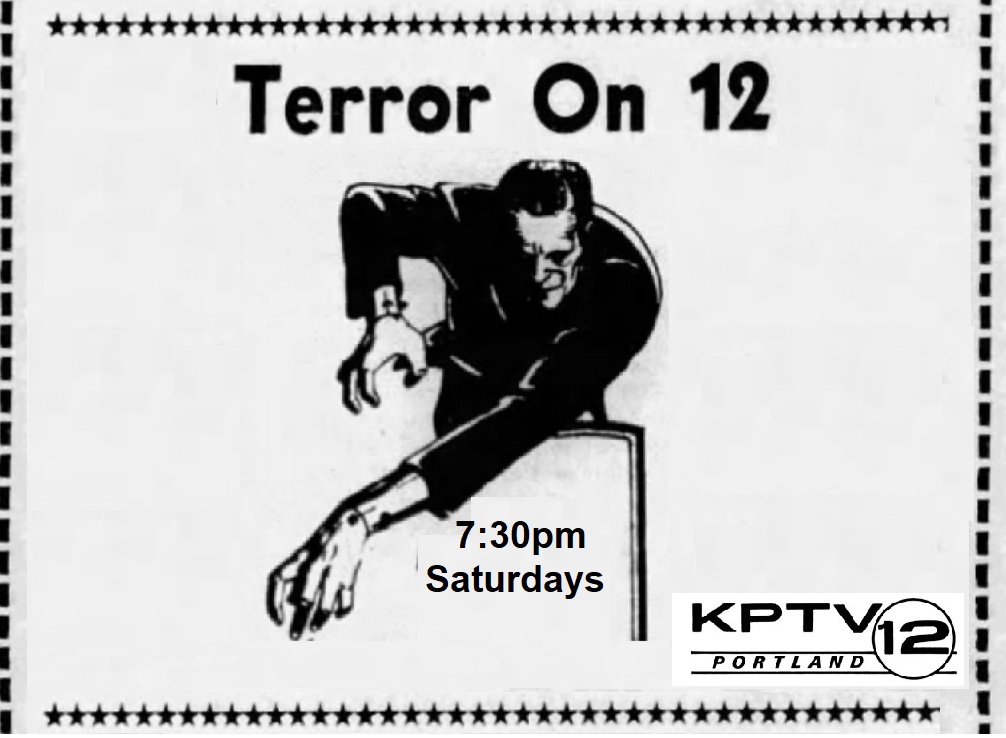 | "Terror On 12" (aka "Terror On Twelve") was a non hosted horror and science fiction movie show screening at 7:30pm Saturdays, on KPTV-TV Channel 12 in Portland, Oregon, USA from 8 August 1964 until 21 November 1964; with the first movie shown being "The Amazing Colossal Man".